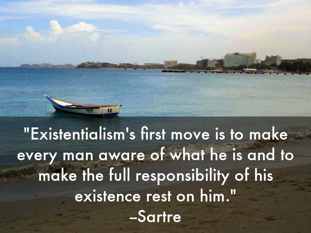 "Existentialism's first move is to make every man aware of what he is and to make the full responsibility of his existence rest on him."