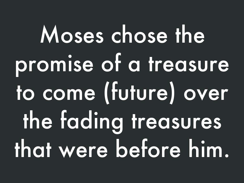 Moses chose the promise of a treasure to come (future) over the fading treasures that were before him.
