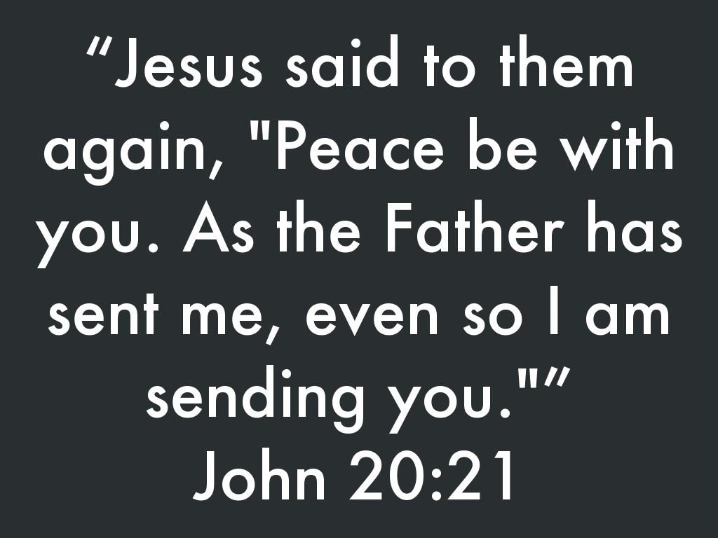“Jesus said to them again, "Peace be with you. As the Father has sent me, even so I am sending you."”