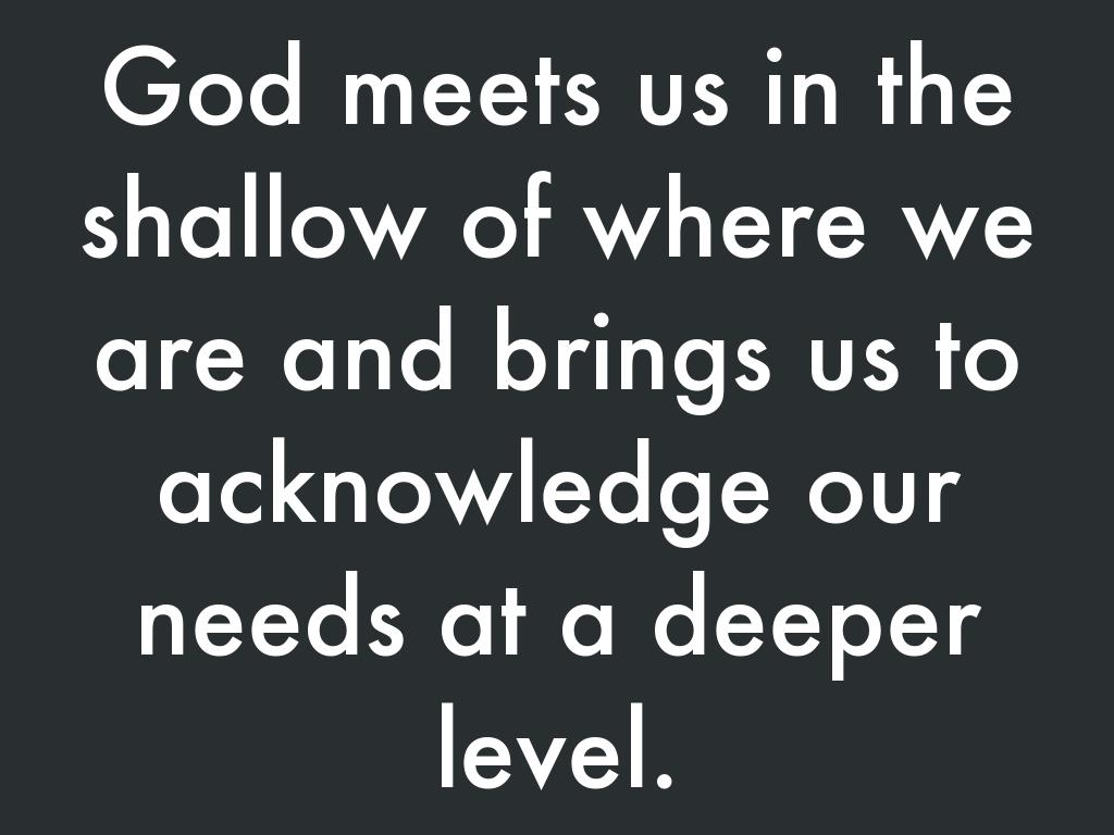 God meets us in the shallow of where we are and brings us to acknowledge our needs at a deeper level.