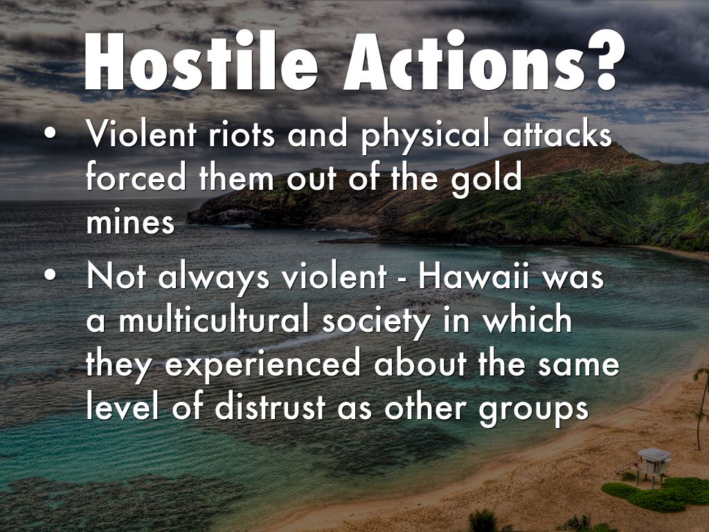 • Not always violent - Hawaii was a multicultural society in which they experienced about the same level of distrust as other groups
