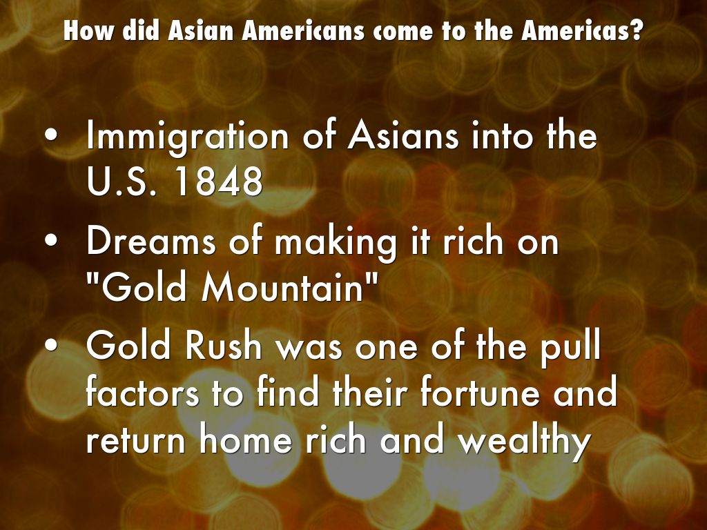 • Gold Rush was one of the pull factors to find their fortune and return home rich and wealthy