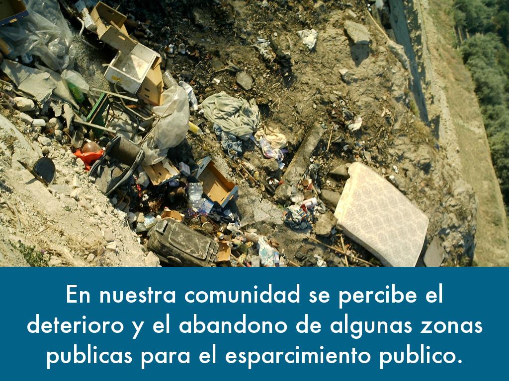 En nuestra comunidad se percibe el deterioro y el abandono de algunas zonas publicas para el esparcimiento publico.