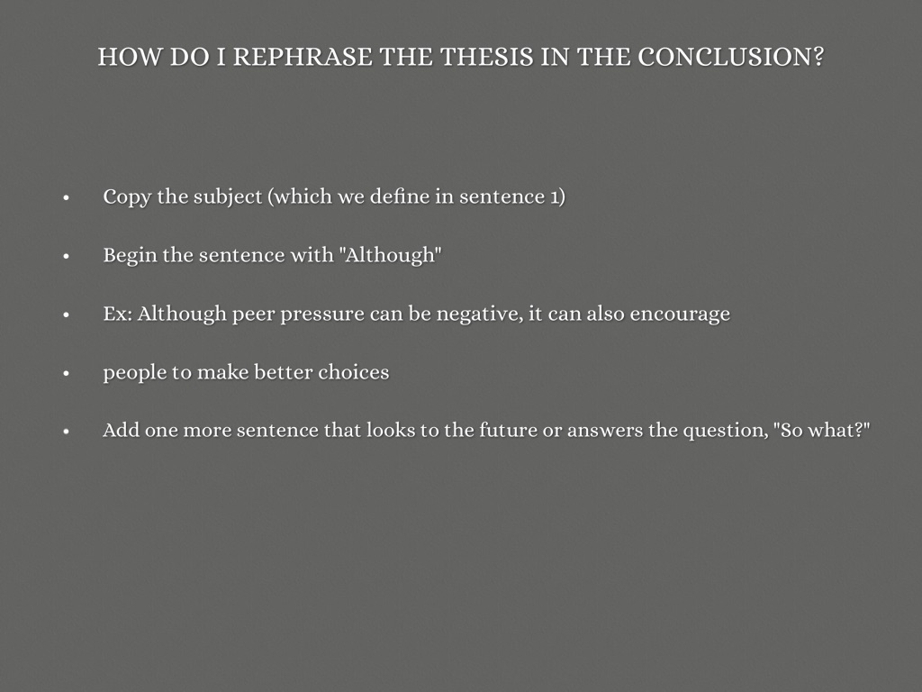 HOW DO I REPHRASE THE THESIS IN THE CONCLUSION?