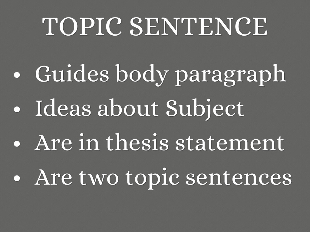 • Idea 1 goes in the topic sentence of Body Paragraph 1