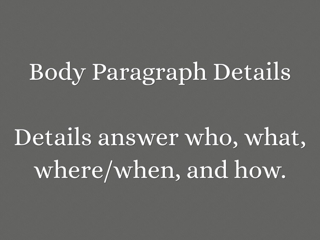 • Idea 2 goes in the topic sentence of Body Paragraph 2