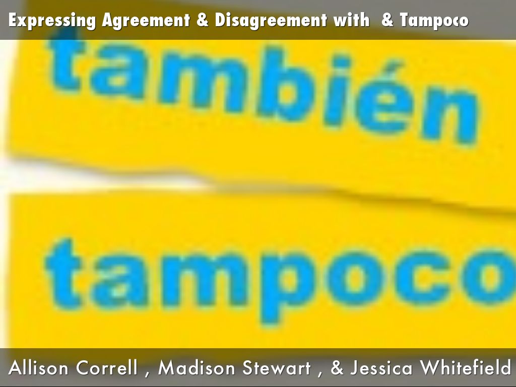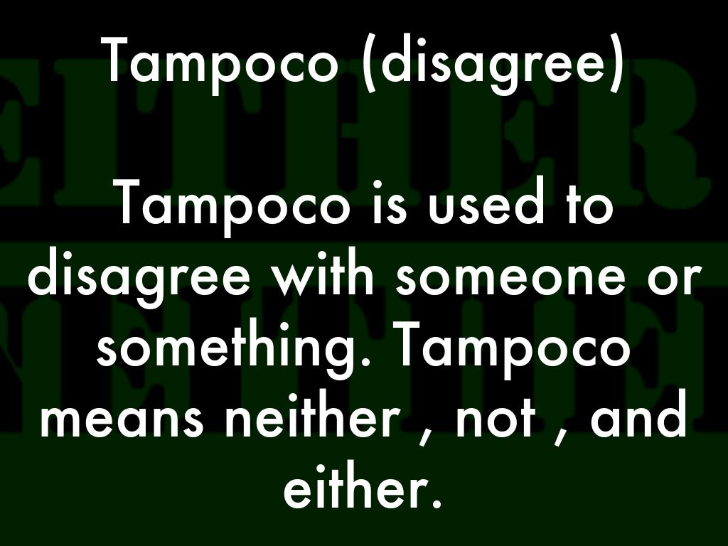 Tampoco is used to disagree with someone or something. Tampoco means neither , not , and either.