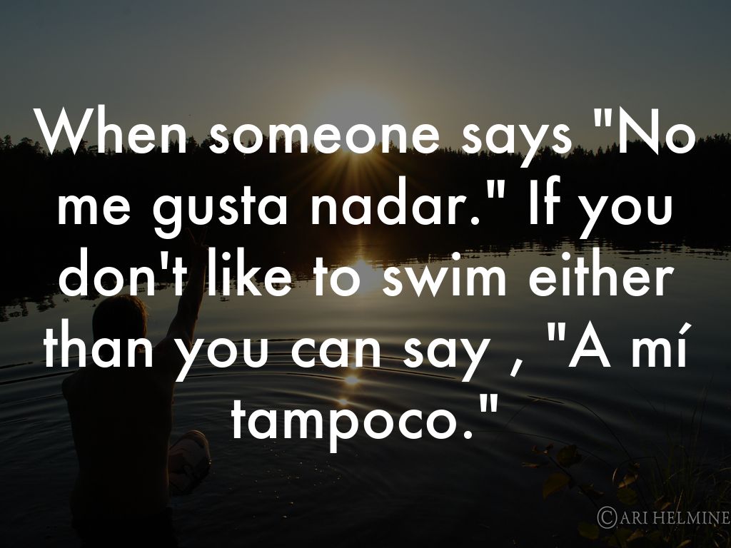 When someone says "No me gusta nadar." If you don't like to swim either than you can say , "A mí tampoco."