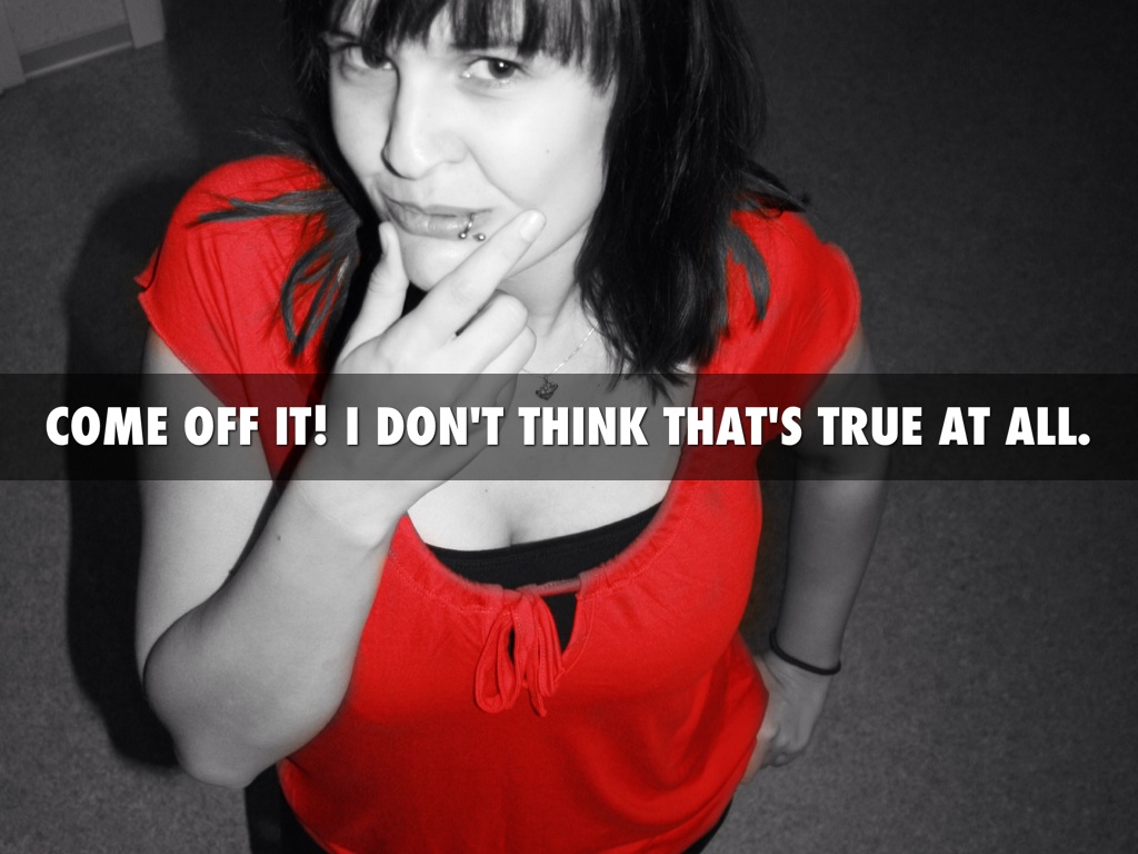 COME OFF IT! I DON'T THINK THAT'S TRUE AT ALL.