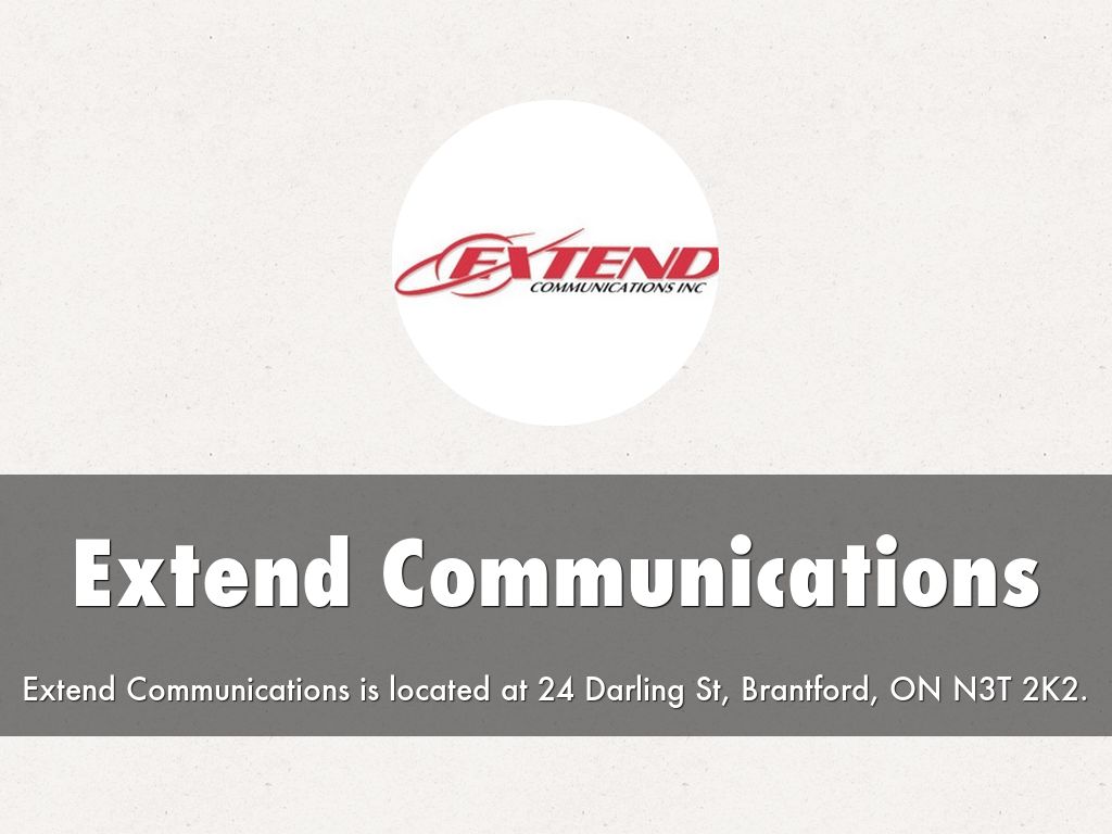 Extend Communications 24 Darling St Brantford, ON N3T 2K2 (519) 759-6820 http://www.extendcomm.com/