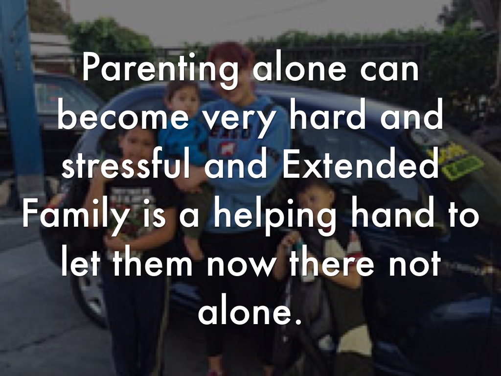 Parenting alone can become very hard and stressful and Extended Family is a helping hand to let them now there not alone.