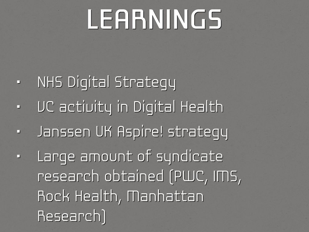 Large amount of syndicate research obtained (PWC, IMS, Rock Health, Manhattan Research)