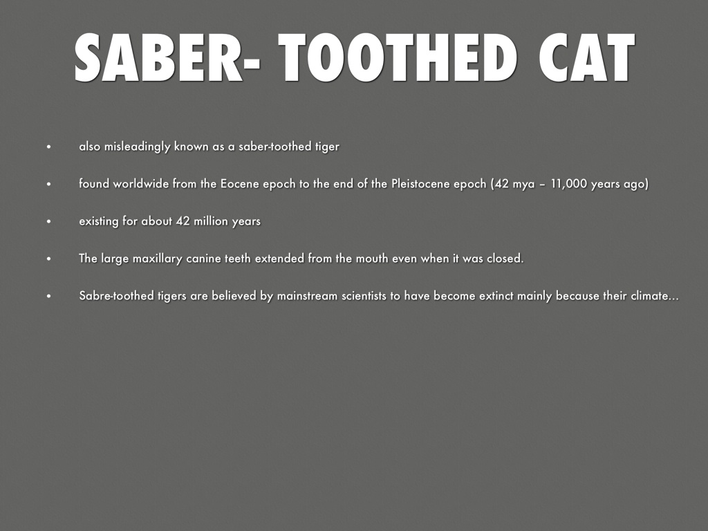 Sabre-toothed tigers are believed by mainstream scientists to have become extinct mainly because their climate was ever changing.