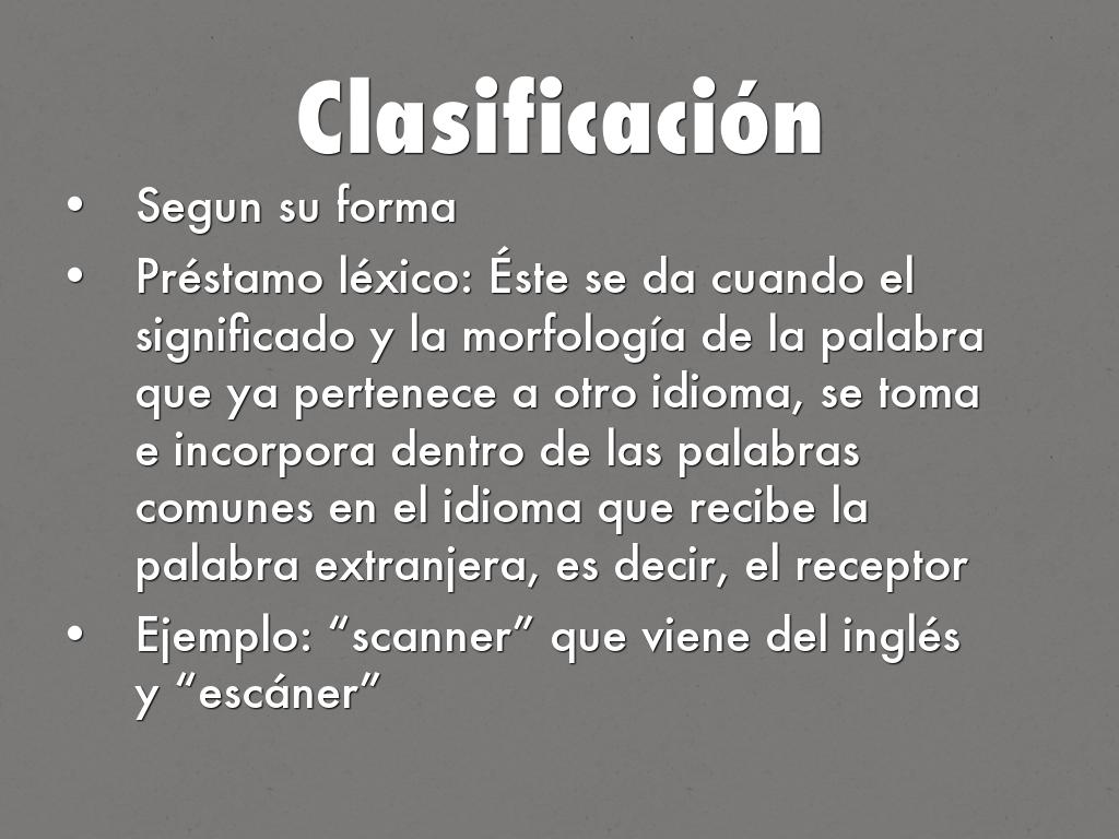 Préstamo léxico: Éste se da cuando el significado y la morfología de la palabra que ya pertenece a otro idioma, se toma e incorpora dentro de las palabras comunes en el idioma que recibe la palabra extranjera, es decir, el receptor