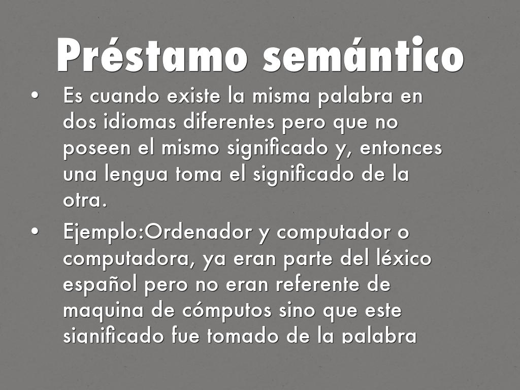 Ejemplo:Ordenador y computador o computadora, ya eran parte del léxico español pero no eran referente de maquina de cómputos sino que este significado fue tomado de la palabra ordinateur que viene del francés y computer que viene del inglés.