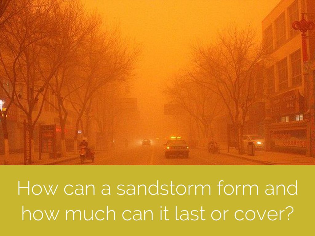 How can a sandstorm form and how much can it last or cover?