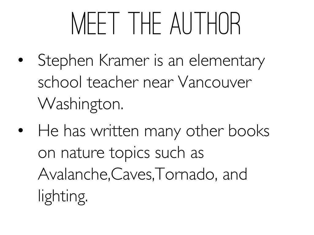 He has written many other books on nature topics such as Avalanche,Caves,Tornado, and lighting.