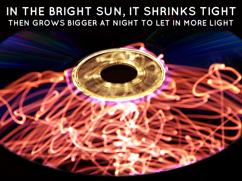 IN THE MIDDLE OF THE IRIS IS A HOLE, THE PUPIL