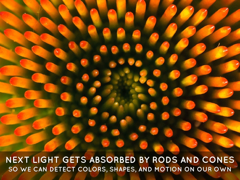 RODS AND CONES ABSORB LIGHT IN THE BACK OF OUR OUR EYES
