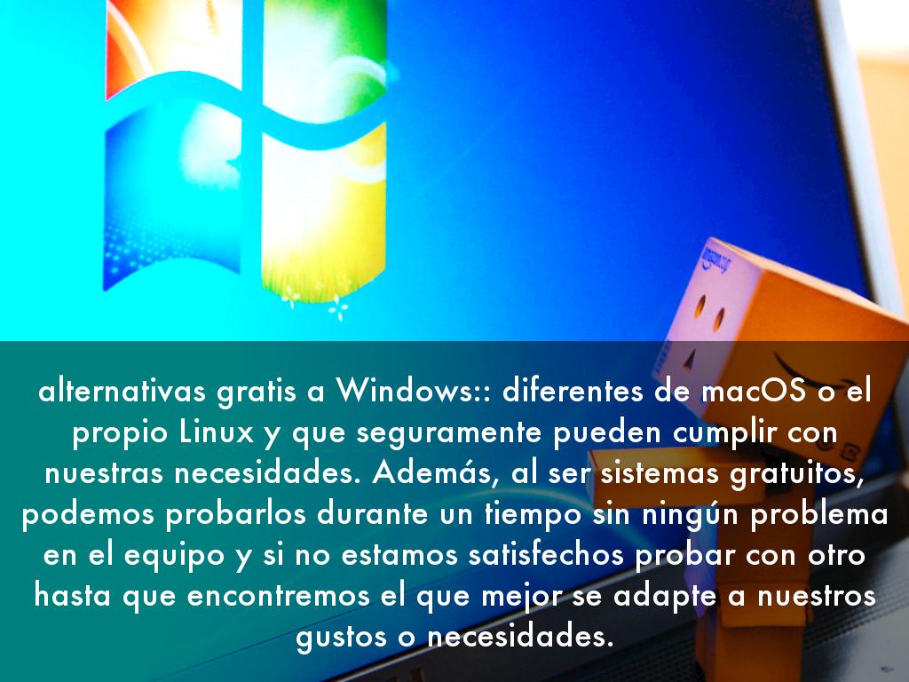 alternativas gratis a Windows:: diferentes de macOS o el propio Linux y que seguramente pueden cumplir con nuestras necesidades. Además, al ser sistemas gratuitos, podemos probarlos durante un tiempo sin ningún problema en el equipo y si no estamos satisfechos probar con otro hasta que encontremos el que mejor se adapte a nuestros gustos o necesidades.