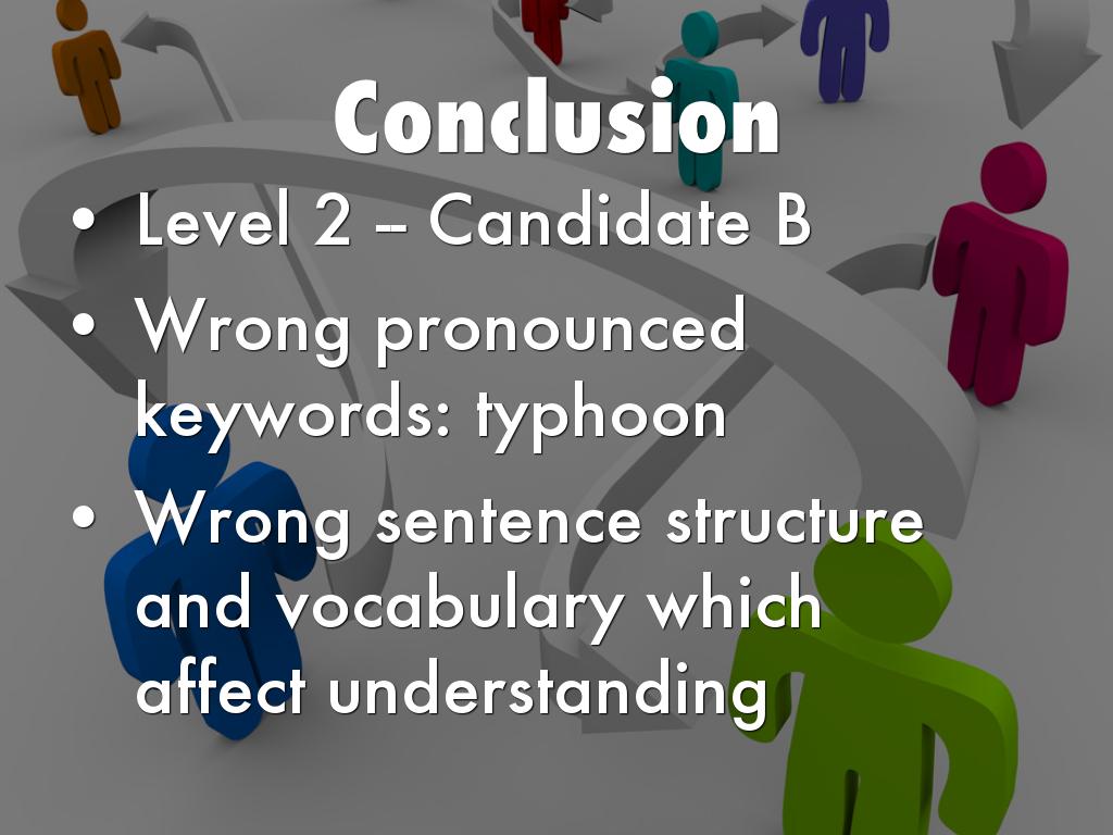 We think A/B/C/D performs quite well/poorly in the group. His … is/are up to standard. We think he can still improve his … We predict he can get Level …