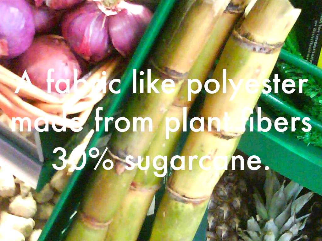 A fabric like polyester made from plant fibers 30% sugarcane.