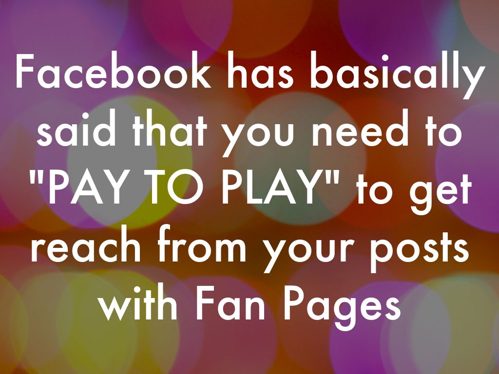Facebook has basically said that you need to "PAY TO PLAY" to get reach from your posts with Fan Pages