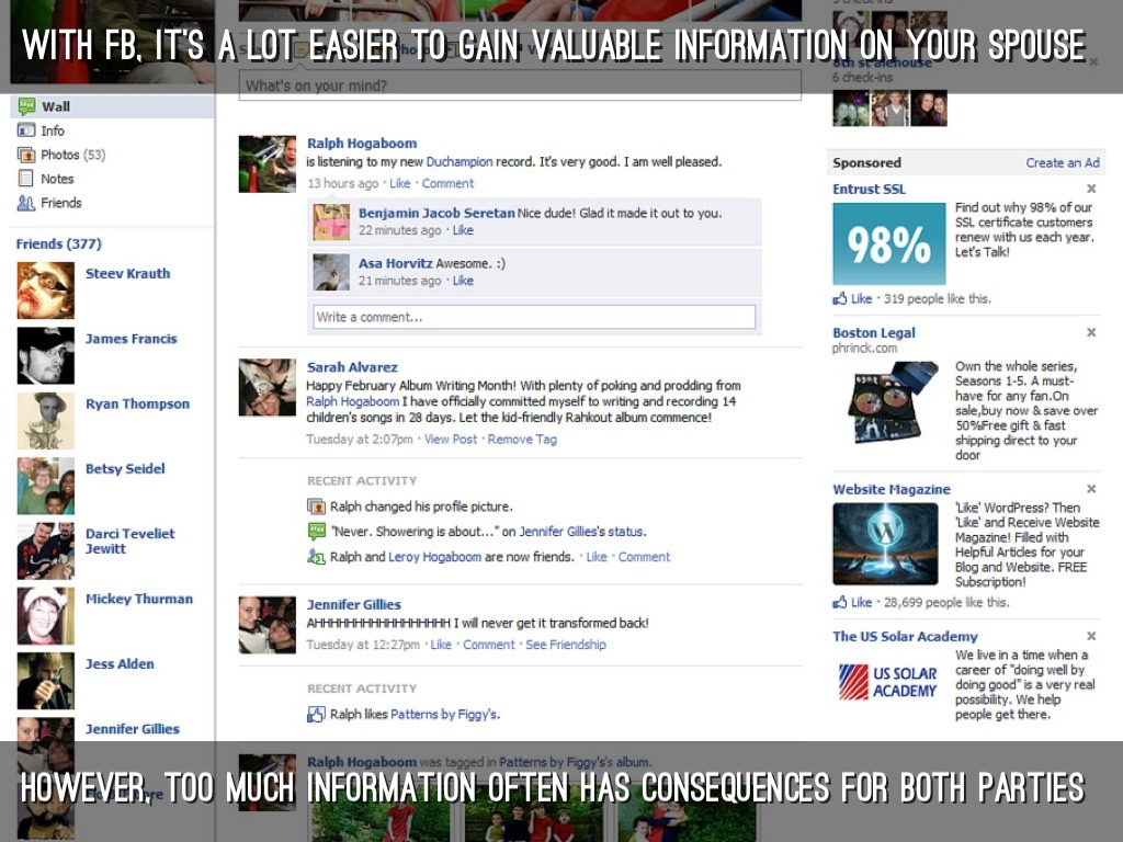 WITH FB, IT'S A LOT EASIER TO GAIN VALUABLE INFORMATION ON YOUR SPOUSE