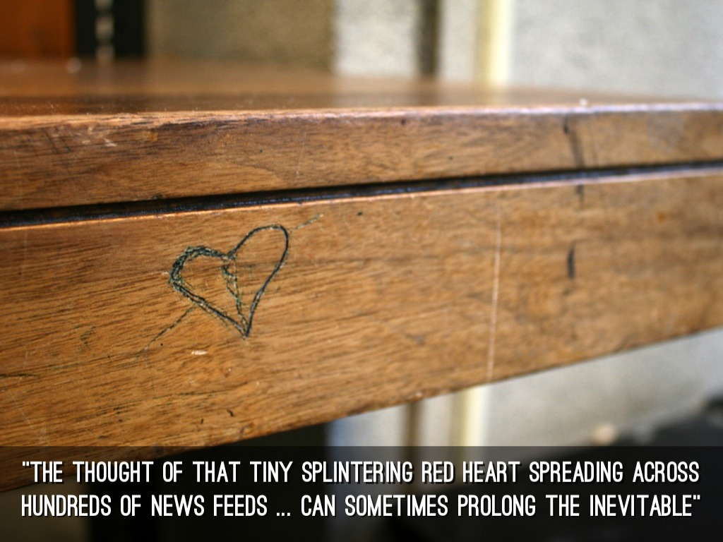 "THE THOUGHT OF THAT TINY SPLINTERING RED HEART SPREADING ACROSS