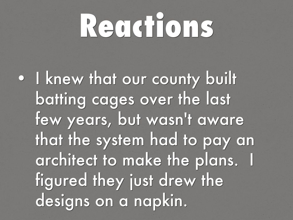 I knew that our county built batting cages over the last few years, but wasn't aware that the system had to pay an architect to make the plans. I figured they just drew the designs on a napkin.