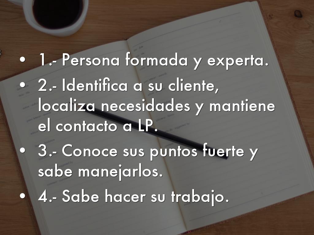 • 2.- Identifica a su cliente, localiza necesidades y mantiene el contacto a LP.