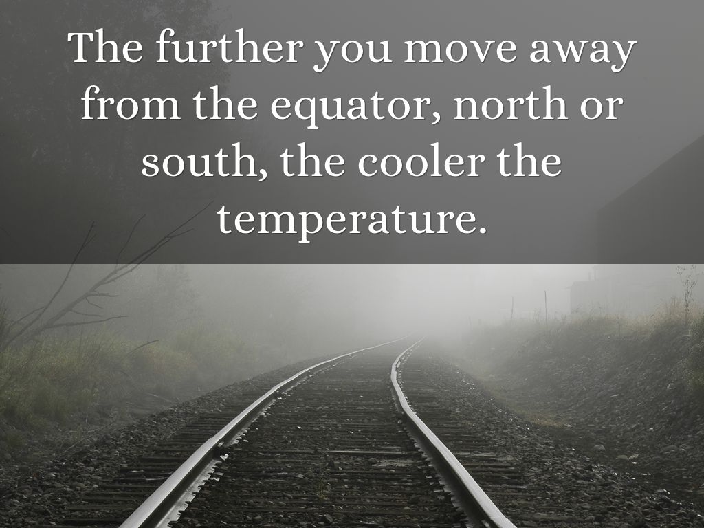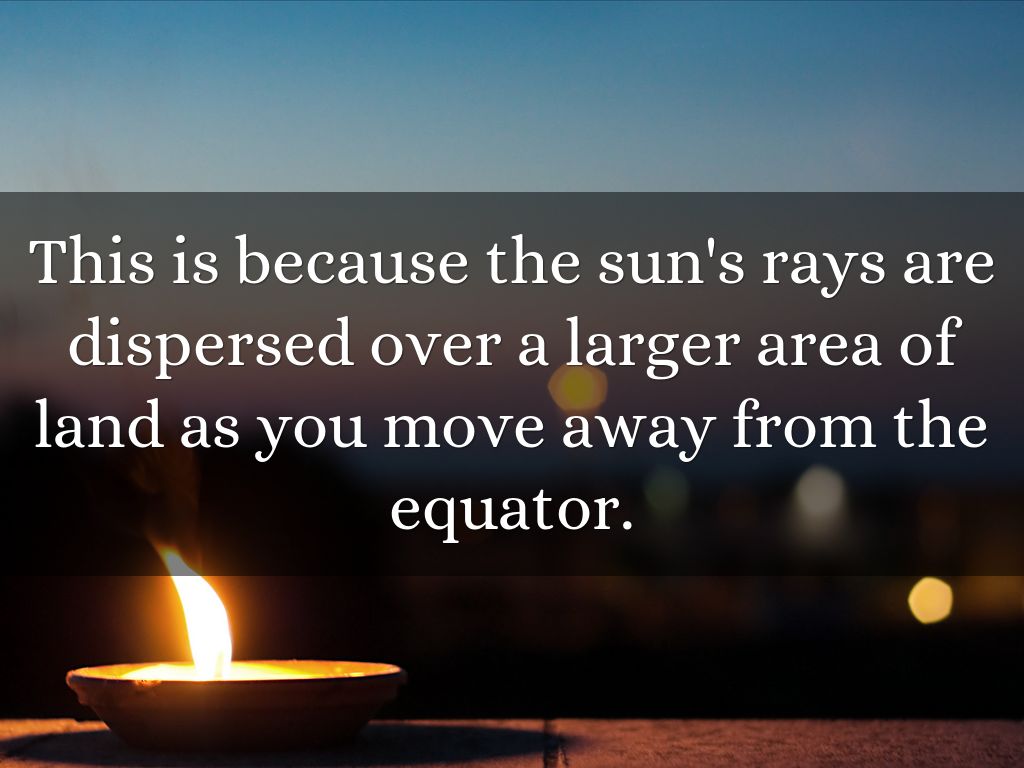 This is because the sun's rays are dispersed over a larger area of land as you move away from the equator.