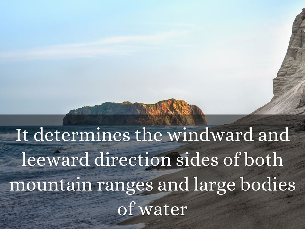It determines the windward and leeward direction sides of both mountain ranges and large bodies of water