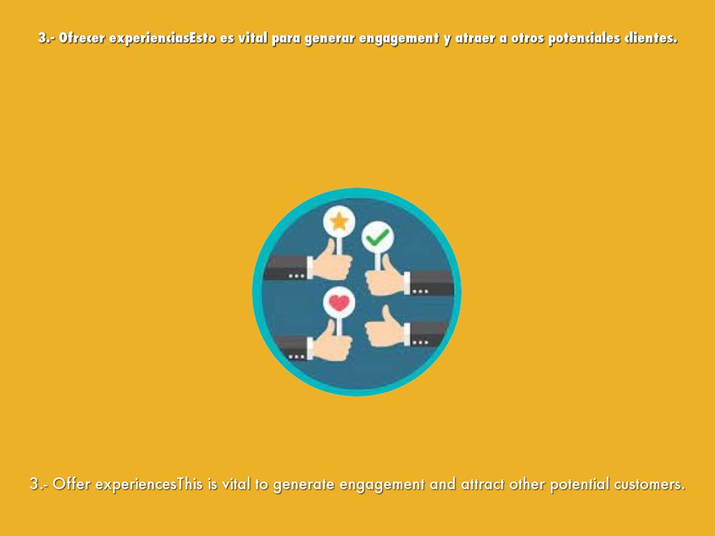 3.- Offer experiencesThis is vital to generate engagement and attract other potential customers.