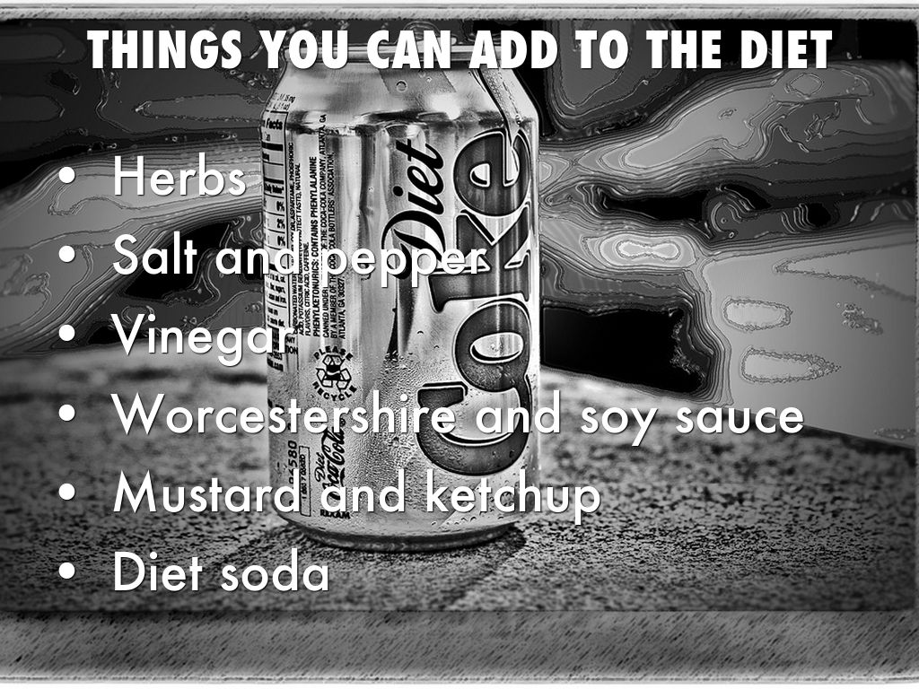 While on the diet you should drink at least 4 glasses of water or diet soda each day