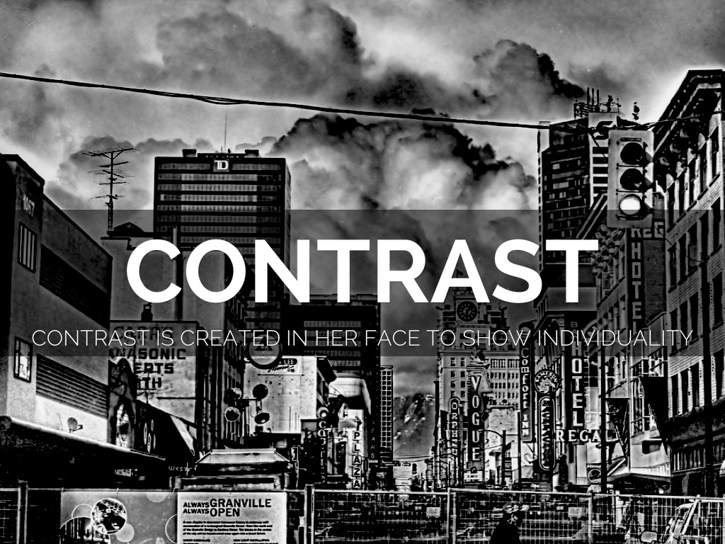 CONTRAST IS CREATED IN HER FACE TO SHOW INDIVIDUALITY