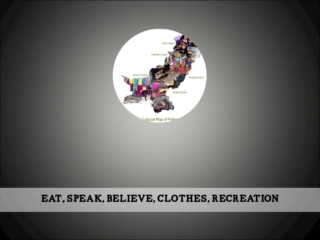 EAT, SPEAK, BELIEVE, CLOTHES, RECREATION