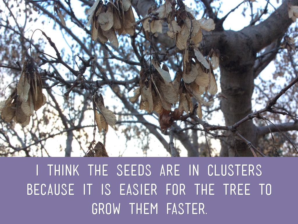 I think the seeds are in clusters because it is easier for the tree to grow them faster.