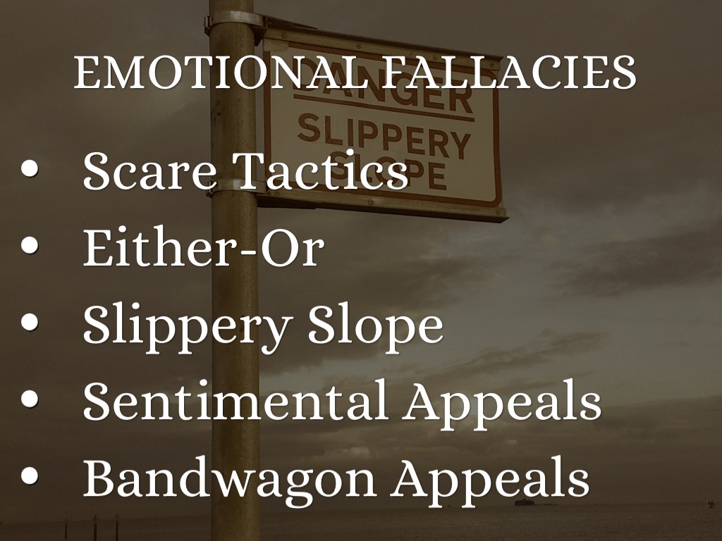 For every appeal: logos, ethos, and pathos, there is a corresponding set of fallacies: logical, ethical, and emotional.