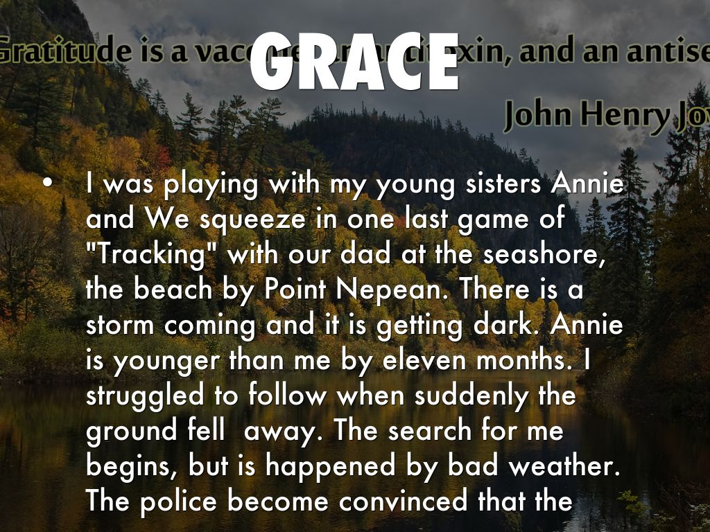 • I was playing with my young sisters Annie and We squeeze in one last game of "Tracking" with our dad at the seashore, the beach by Point Nepean. There is a storm coming and it is getting dark. Annie is younger than me by eleven months. I struggled to follow when suddenly the ground fell away. The search for me begins, but is happened by bad weather. The police become convinced that the young man, Kip, who found me backpack on the beach, and Ted, who was too inebriated to remember much of what he did that night on the beach.