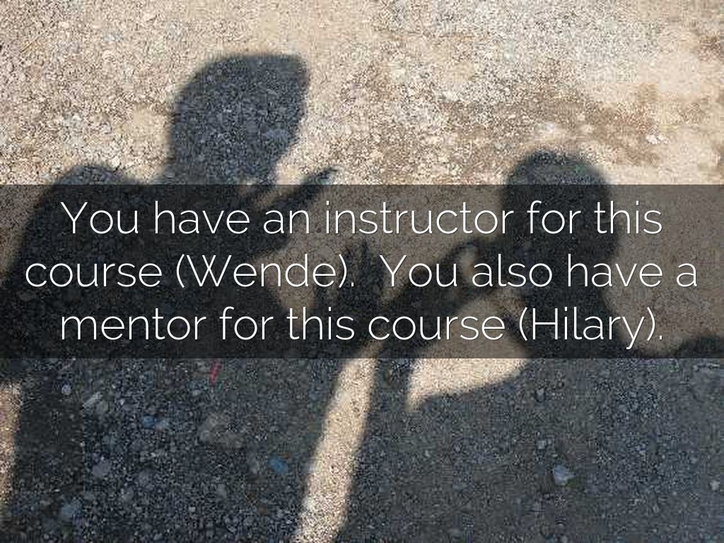 You have an instructor for this course (Wende). You also have a mentor for this course (Hilary).