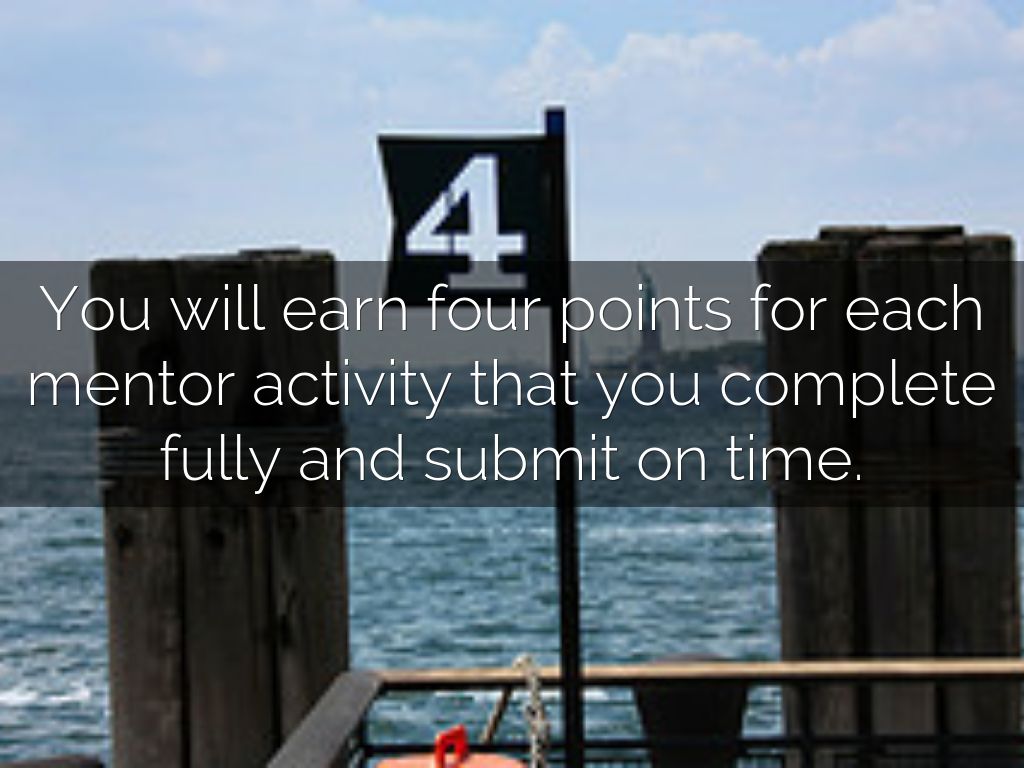 You will earn four points for each mentor activity that you complete fully and submit on time.