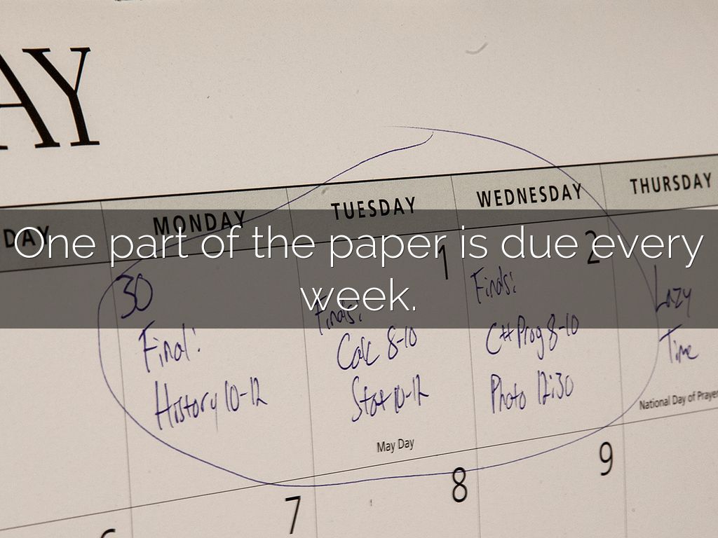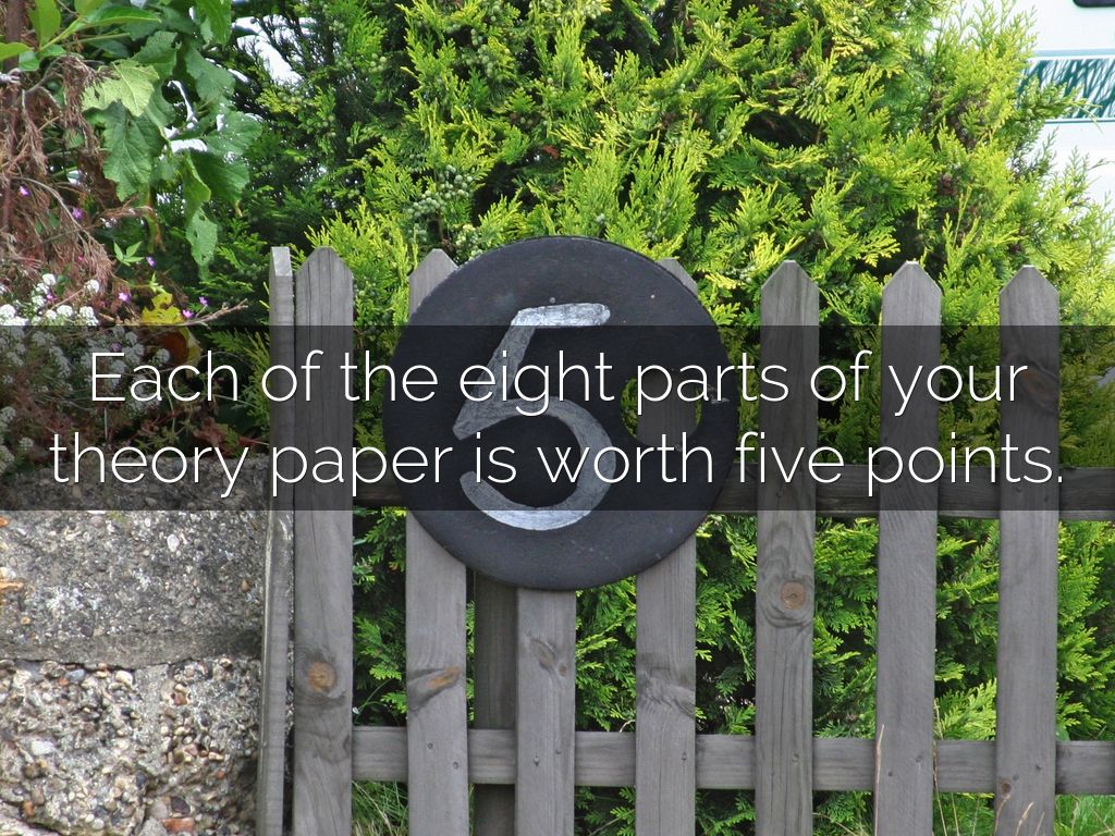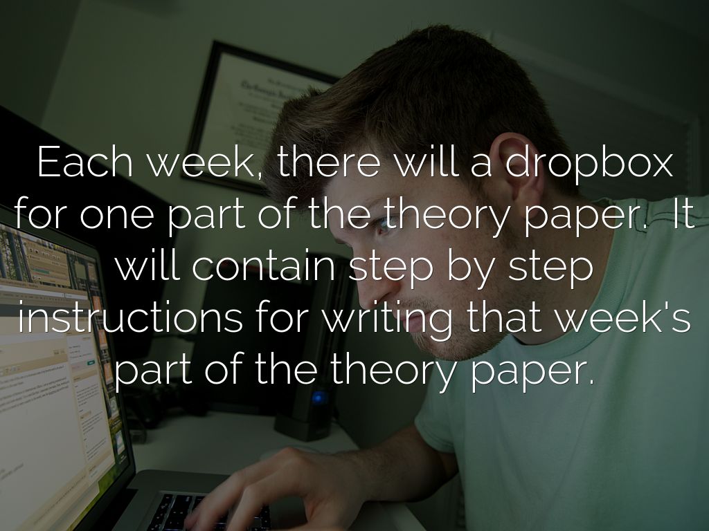 Each week, there will a dropbox for one part of the theory paper. It will contain step by step instructions for writing that week's part of the theory paper.