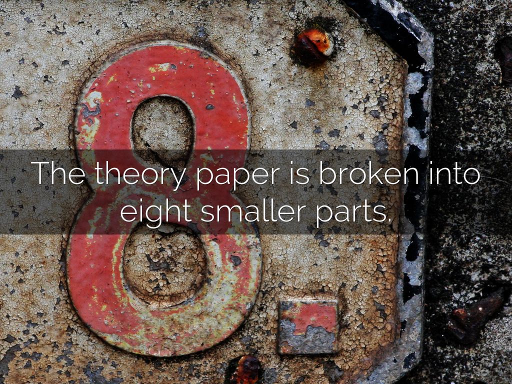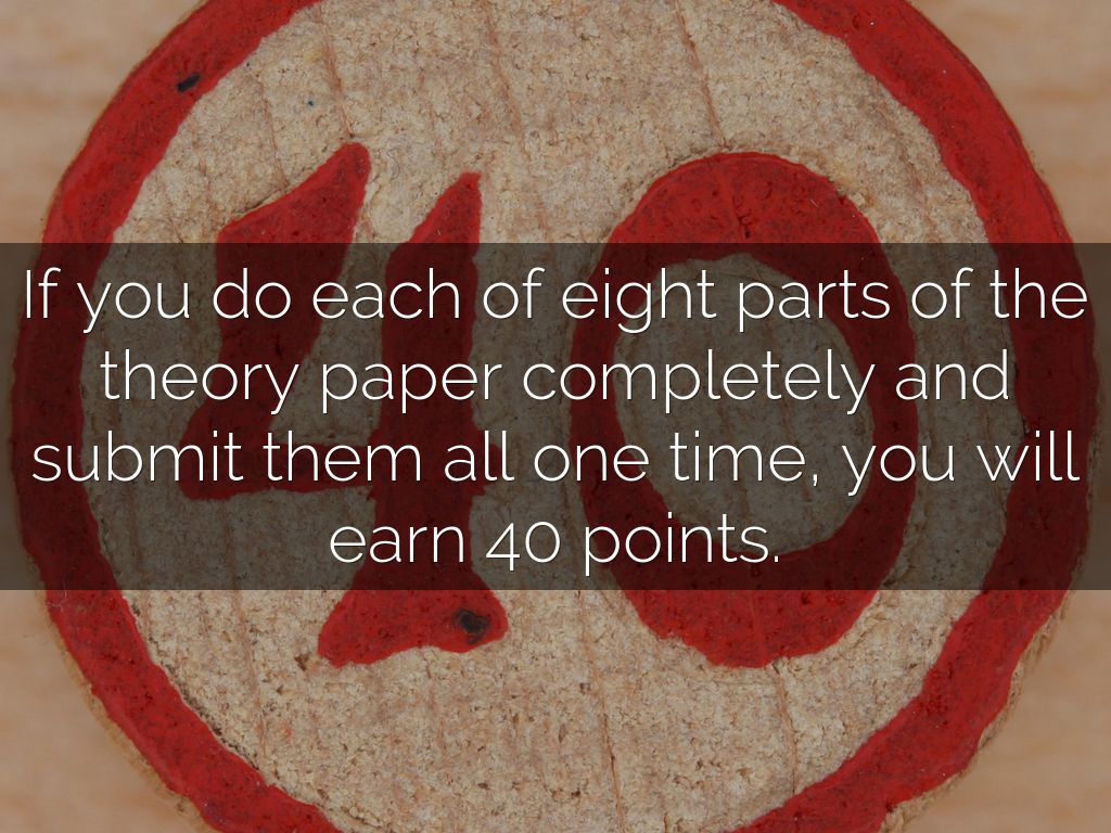 If you do each of eight parts of the theory paper completely and submit them all one time, you will earn 40 points.