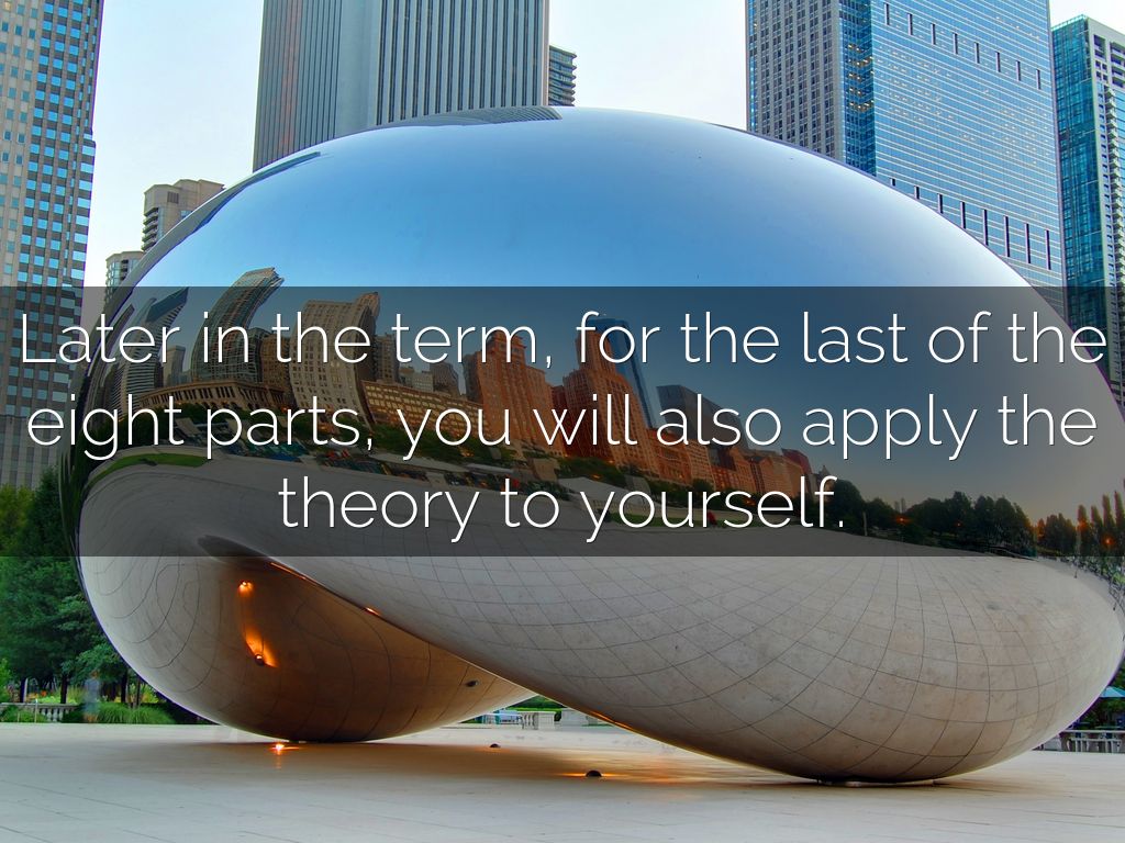Later in the term, for the last of the eight parts, you will also apply the theory to yourself.