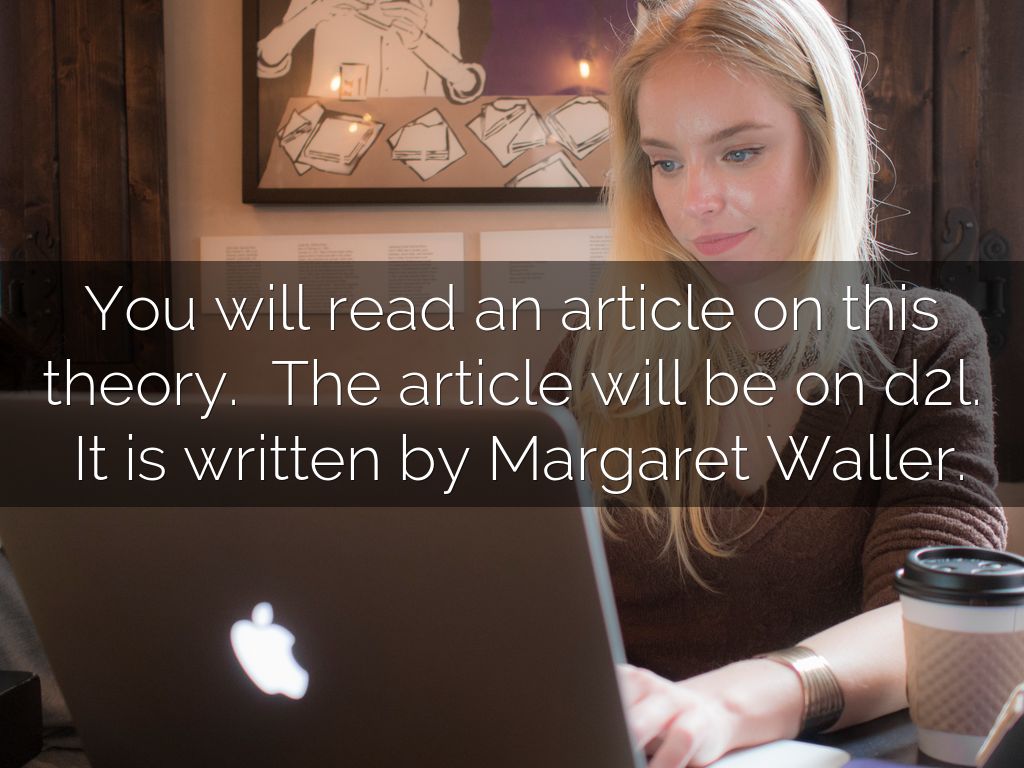 You will read an article on this theory. The article will be on d2l. It is written by Margaret Waller.