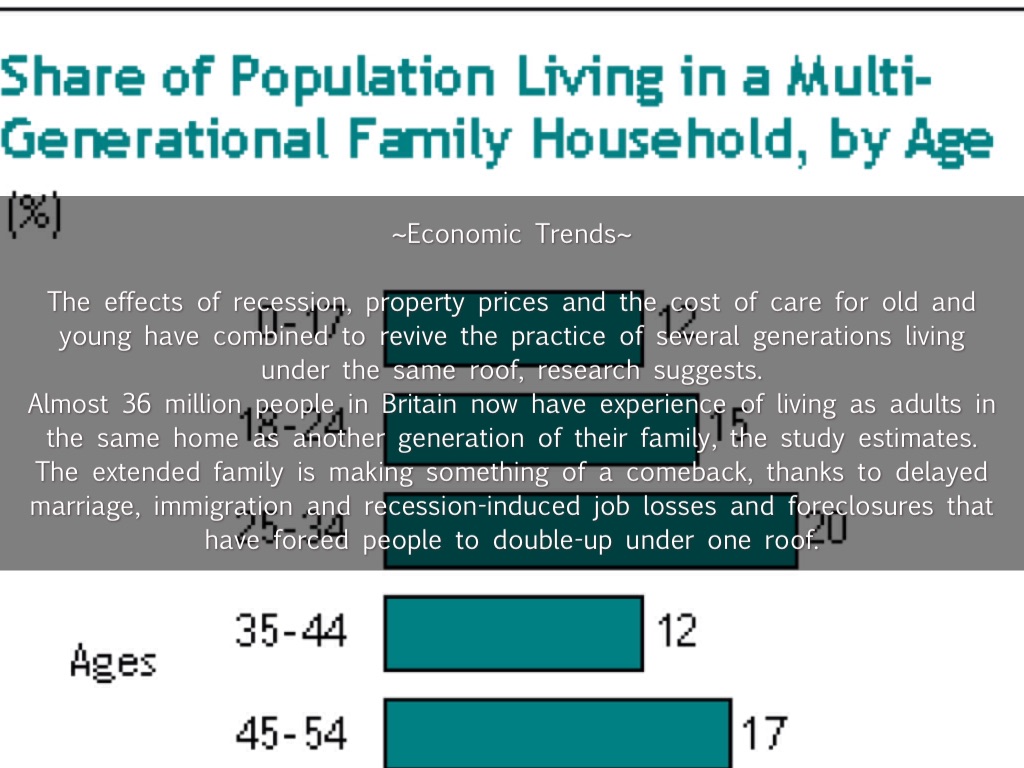The effects of recession, property prices and the cost of care for old and young have combined to revive the practice of several generations living under the same roof, research suggests.