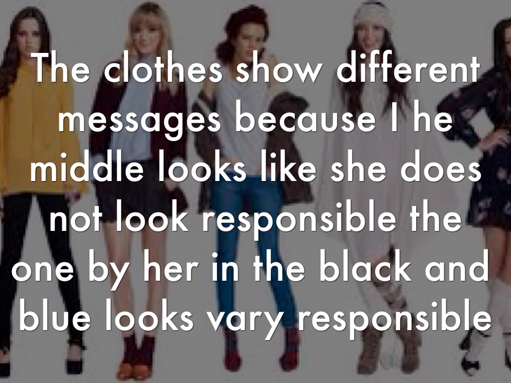 The clothes show different messages because I he middle looks like she does not look responsible the one by her in the black and blue looks vary responsible