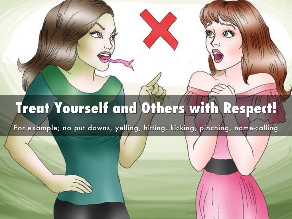 For example; no put downs, yelling, hitting. kicking, pinching, name-calling