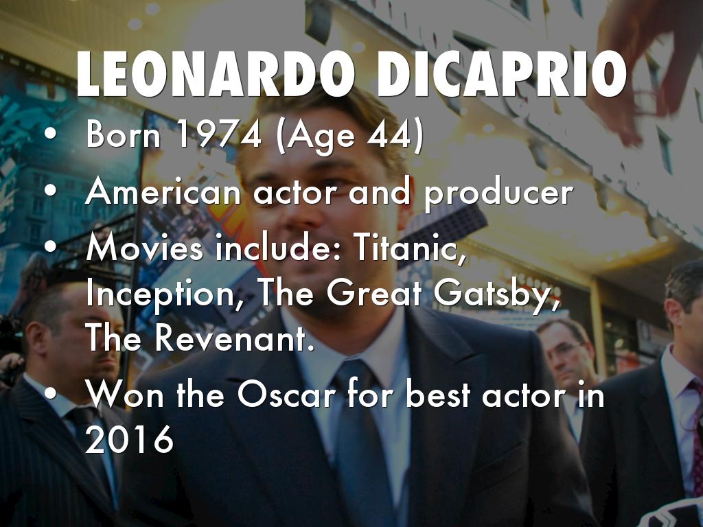 Movies include: Titanic, Inception, The Great Gatsby, The Revenant.